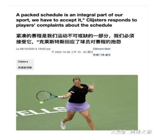 近日,比利时名将克里斯特尔斯谈到了近期很多球员热议的赛程问题,不过,在她看来,漫长赛程只是网球的一部分,球员们必须学会接受。 网坛愈演愈烈的赛程过长争议引发球员不满,斯瓦泰克、阿尔卡拉斯、高芙、萨巴伦卡纷纷发声指责现在的赛程安排非常不合理。然而,对此,前世界第一克里斯特尔斯直言不讳地指出,以她曾经在球员工会的经验来说,密集赛程的根本原因是因为很多赛事必须要存在,而这也是为了照顾很多低排名球员的参赛需求,因为要保证全年都有比赛进行,且任何赛程不可能让所有人满意。 “关于赛程的抱怨过去一直存在、现在存在、未来也永远会存在。”克里斯特尔斯在近日的发言中坦然表示。“我在 2003-2004年担任WTA委员会董事会成员的两年期间,我听到的最多的全是赛程、赛历的问题,现在也还是一样。但要想缩短网球赛季,整个排名系统都需要改变,积分系统也需要改变,这才是让赛程缩短的唯一方法,但许多球员并不想缩短赛季……这是一个无解的处境。主办方和赛事总监都在做好本职工作,提供了就业机会,奖金也在增加。我认为有很多事情都在朝着正确的方向发展,这就是现状,这是工作的一部分。” 克里斯特尔斯直指问题核心:“要缩短网球赛季,就必须改变整个排名系统和积分体系。这是改变现状的唯一方法”。不过,她同时透露了一个矛盾现象:“很多球员其实并不希望网球赛季缩短”。 在克里斯特尔斯看来,赛程争议本质上是一个无解的难题,因为这涉及多方利益的复杂平衡。 她指出,赛事主办方和总监只是在尽责工作:“他们创造了就业机会,许多方面正在往更好的方向转变”。 对于赛程安排的必要性,克里斯特尔斯提供了另一个视角:“11月和12月的赛事是必要的,因为并非所有球员都有机会在整个赛季参与大量比赛”。 她进一步解释:“不是所有选手都能打进决赛。大多数人在第一、二轮就遭淘汰。因此相较于那些晋级决赛并赢得冠军的选手,他们在下一站赛事前其实拥有休息时间”。 然而,与克里斯特尔斯的接受态度形成鲜明对比的是,现役球员们切实感受到的身体与精神的双重压力。 斯瓦泰克曾具体描述:“赛季后半段大家都很疲惫。尤其是亚洲赛季,在一年临近结束时还必须全力以赴,我认为这是最残酷的”。今年中网期间,单日竟出现5名选手退赛的异常情况,凸显出问题的严重性。澳洲名将德米纳尔更是直言不讳:“球员的职业生涯将因心理疲劳而缩短,现在的比赛实在太多了”。 针对球员们的抱怨,澳大利亚前选手兼塞雷娜·威廉姆斯的前教练雷纳·斯塔布斯提出了另一种看法。她认为,顶尖球员实际上拥有更大的话语权:“从电视观众来看,有三个名字可以吸引人注意:Carlos、Coco 和 Novak”。 斯塔布斯一方面理解球员的处境,另一方面也指出其中的矛盾:“当球员说赛程必须缩短以便参加迈阿密郊区的表演赛时,这很难让人认真对待”。她特别提到阿尔卡拉斯:“尽管我很爱 Carlos,但最近我发现他几乎在十二月的每一次表演赛中都有参赛名单”。 面对愈演愈烈的争议,ATP与WTA均表示高度重视选手健康。ATP在近日的声明中表示,正积极推动赛程改革,“延长选手休赛期是我们的主要目标”。WTA则强调,新赛制并未加重选手比赛负担,并引用过去十年的数据指出,顶尖球员平均每年参赛约20站。 然而,斯瓦泰克一针见血地指出:“我认为伤病如此之多,是因为赛季太长,而且竞争太激烈”。 网球赛程的争议仿佛一场永无休止的多拍拉锯战。在球员健康、赛事运营、商业利益和观众期待的碰撞中,克里斯特尔斯的话语揭示了一个现实:这不是简单的对错问题,而是一个职业网球生态系统的复杂平衡。 或许如克里斯特尔斯所说,这场关于赛程的争论将“过去一直存在、现在存在、未来也会存在”。(来源:网球之家 作者:陆小天) |
