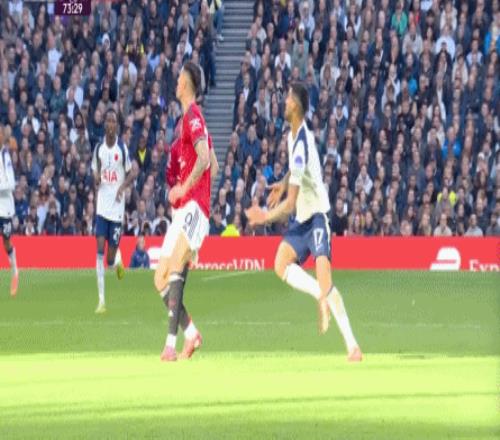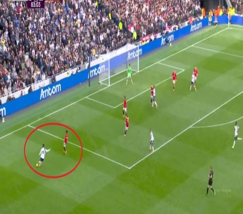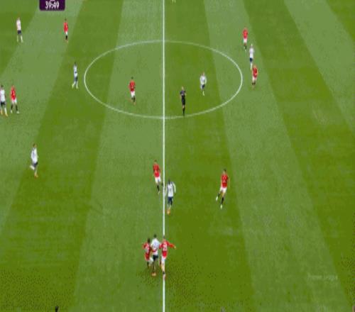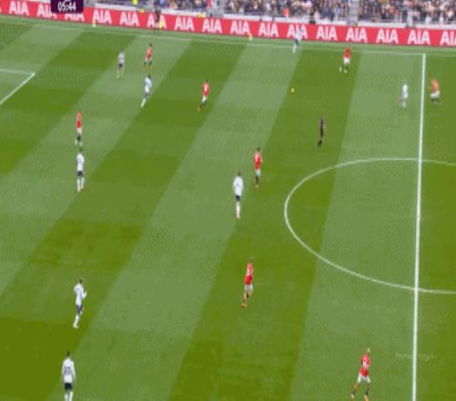 所以你可以看到,当热刺打得比0-0的时候更简单一些,其实就是将压力直接甩到曼联后卫的身上的时候,曼联就难免要出问题。 哪怕当时的曼联在中后场已经换了3个人,看起来已经补充好了体能。 但这就是我们不厌其烦,一直在说的观点:无论你在防守端如何调整和换人,曼联的防守问题几乎是无法解决的,因为你的球员的实力就是如此。 只要对手压上来,持续地制造防守压力,曼联的防守端就会出乱子,这场比赛的曼联甚至因此折损了马奎尔。 而这意味着什么?意味着未来几场比赛,约罗可能会重回首发了。 老将和年轻球员各有问题,这一点完全可以得到理解,毕竟你用他们,就要在战术思考中考虑到他们现阶段的短板。 但作为曼联后卫线最强一环,你也很难苛责德里赫特了,因为比赛临近结束的他已经几乎耗尽,不仅要看到他需要面对替补上来的特尔,还要看到他在换人之前作为边中卫的表现:
