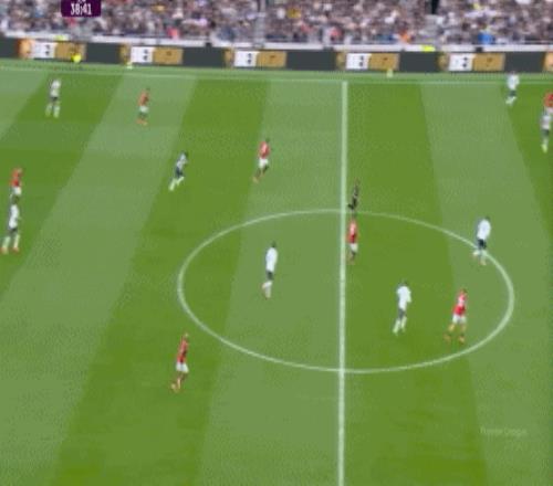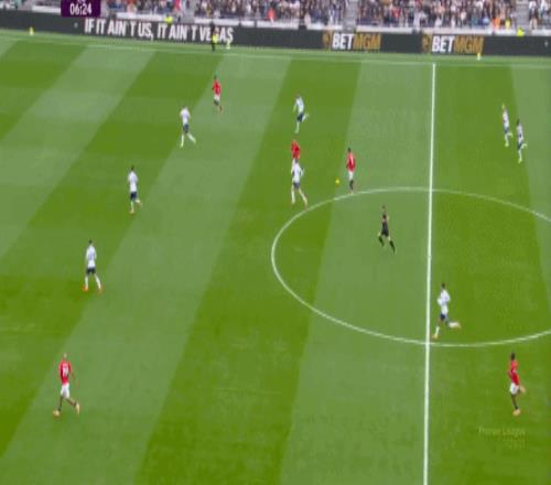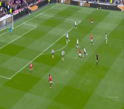 这个时候,当你再回想两次传中时的约罗的站位问题的时候,是不是就显得尤为重要了? 足球比赛就是这样的:你在每一个区域,每一个位置上的每一个球员,所做的每一个动作的质量高低,都可能会在90分钟的时间长度和对手输出的强度变化下,成为下一个关键节点的导火索。 所谓的教练们关注细节,其实就是在关注这些细枝末节的地方。 但是,作为一支无论教练怎么看菜下饭,就像今天客场面对热刺,开局就摆出五后卫,随后在比赛当中或主动,或被动地换下两个后卫的球队,却能在比赛最后10分钟里连丢两球,你觉得这是一支可以实质上改善防守质量的球队吗? 在我们看来,这是不能的,你只能带着这个11场丢18球的防守端进行比赛,所以真正能解决问题的,还是在向前的方向上。 这个时候,阿莫林在开局的进攻端布置就显得尤为重要了。 库尼亚代打中锋,在赛季初的单场比赛有效,是因为当时首发的左边锋是芒特,可以用逆足提供一条斜向的线路,从而和另一侧的逆足进攻端互相联系。 然而,今天库尼亚代打中锋,姆贝乌莫顺足打在左侧,他自己可以凭借身体和速度稍有发挥,可是库尼亚呢?